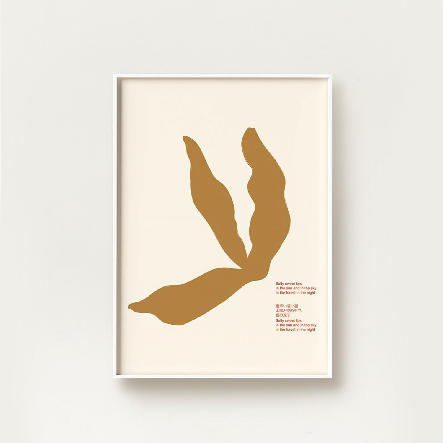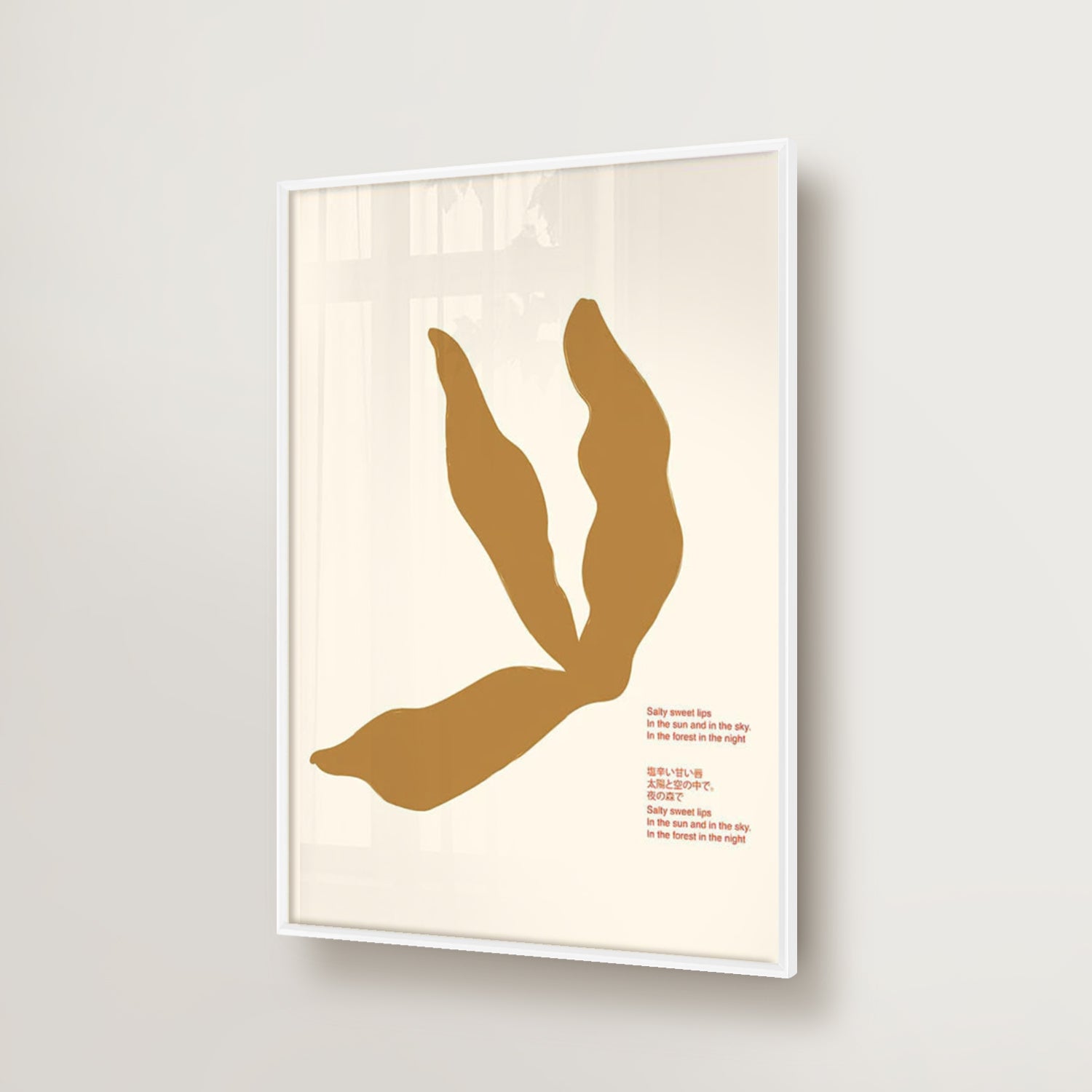 Japanese Salty Sweet Lips blends playful allure with minimalist edge—bold, abstract lips rendered in a style that feels both modern and cheeky. With subtle nods to pop and traditional Japanese aesthetics, this piece adds a touch of flirtation and attitude to any art-forward space.
